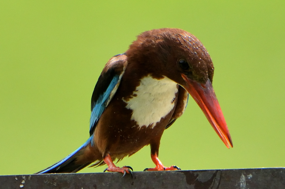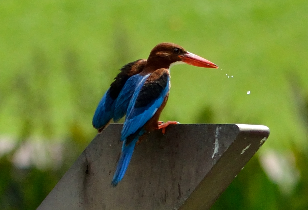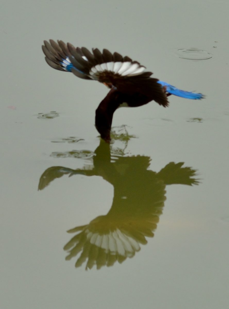 エビを狙い飛び降りてきたWhite-throated Kingfisher。  撮影:Apr.2014 @Singapore