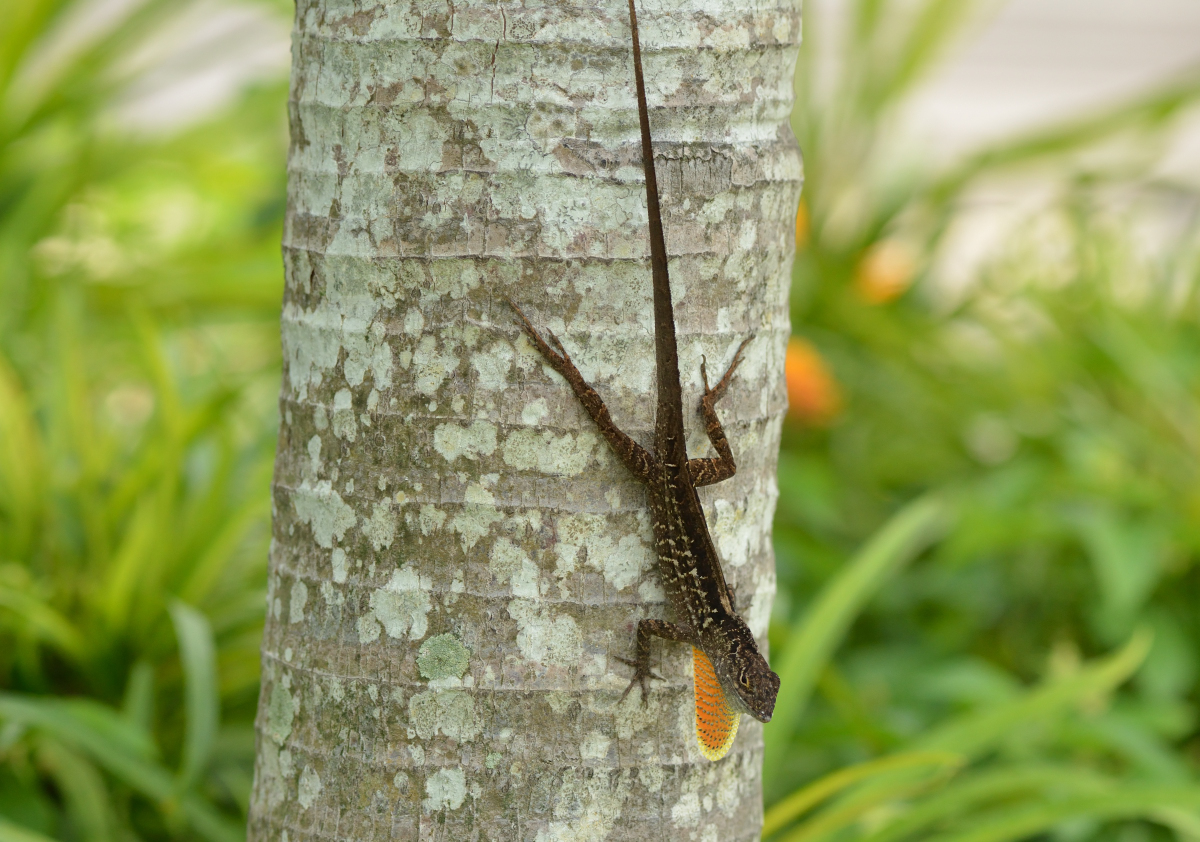 アノールトカゲのオス。中米原産だが木材などに紛れてシンガポールにも侵入してきたと思われる。。非常に繁殖力が強く在来種が脅かされているという。 撮影:Sep.2013 @Singapore