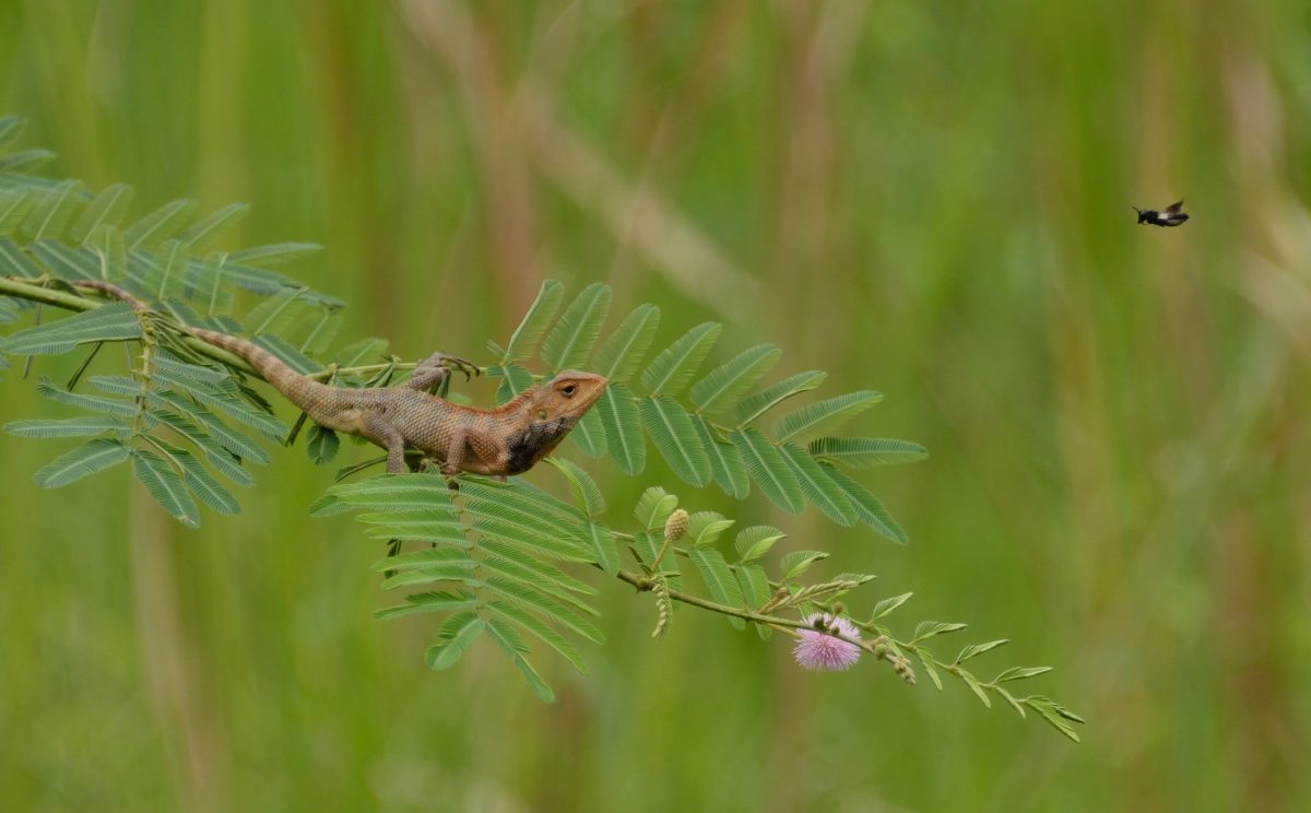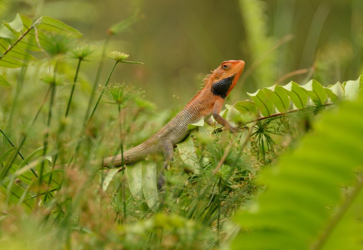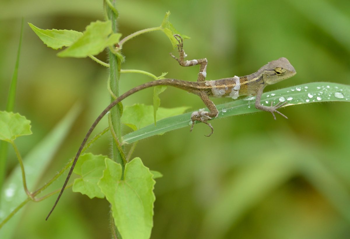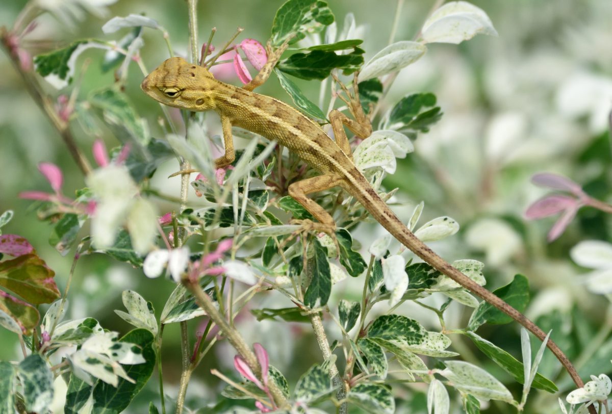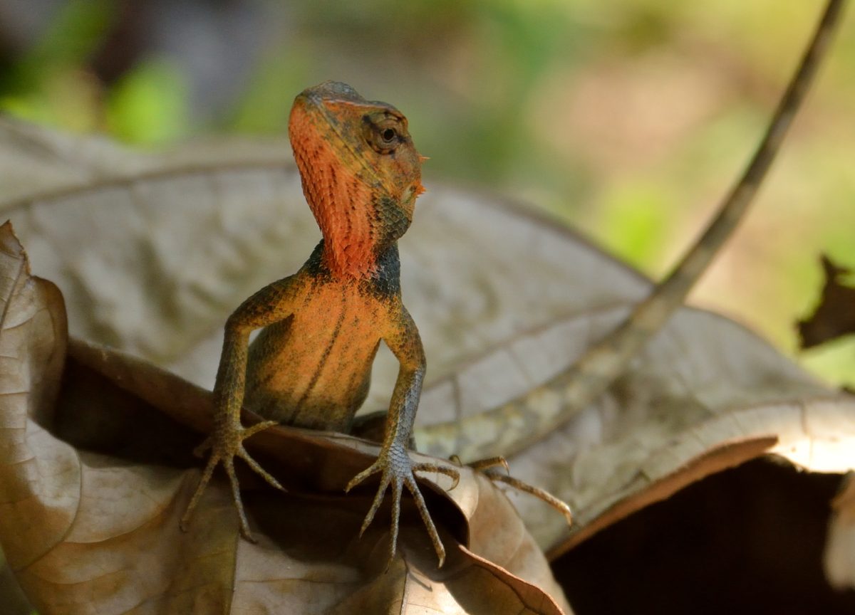 インドから東南アジアにかけて広く生息し体色が変化するトカゲ。写真は婚姻色が発現しているオス。 撮影:Sep.2012 @Singapore