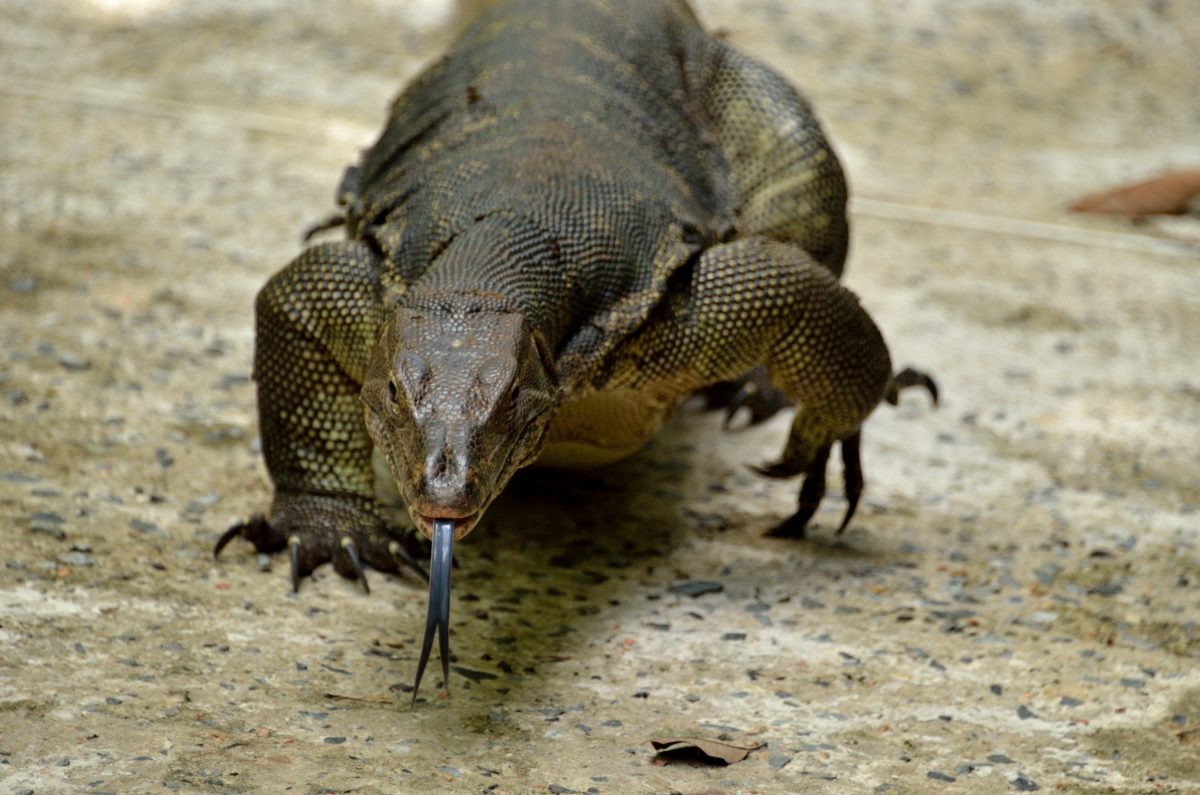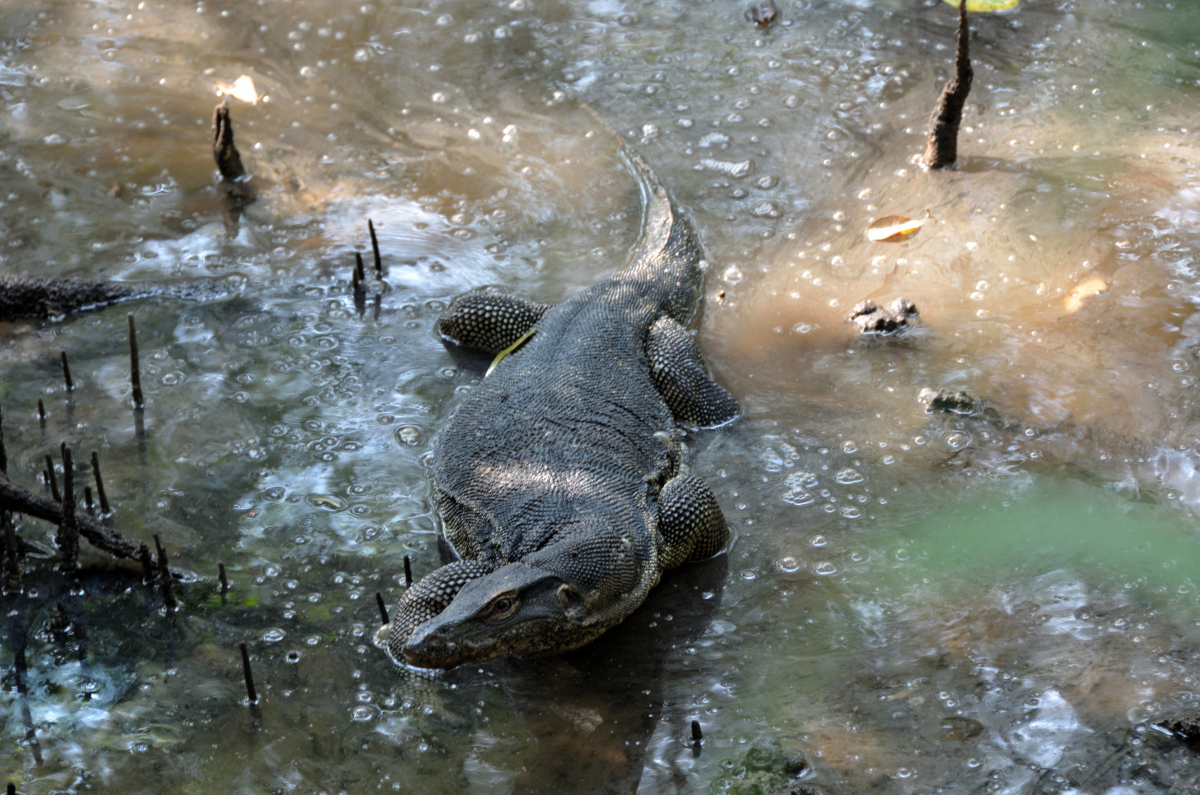 インドから東南アジアにかけての水辺に生息する最大級のオオトカゲ。全長約3mに達する巨大な個体もおり、一見、ワニと見まがうほどである。 撮影:Jan.2014 @Singapore