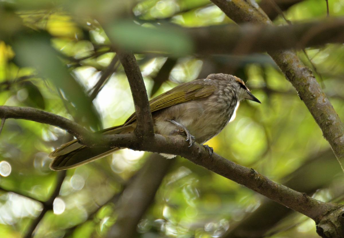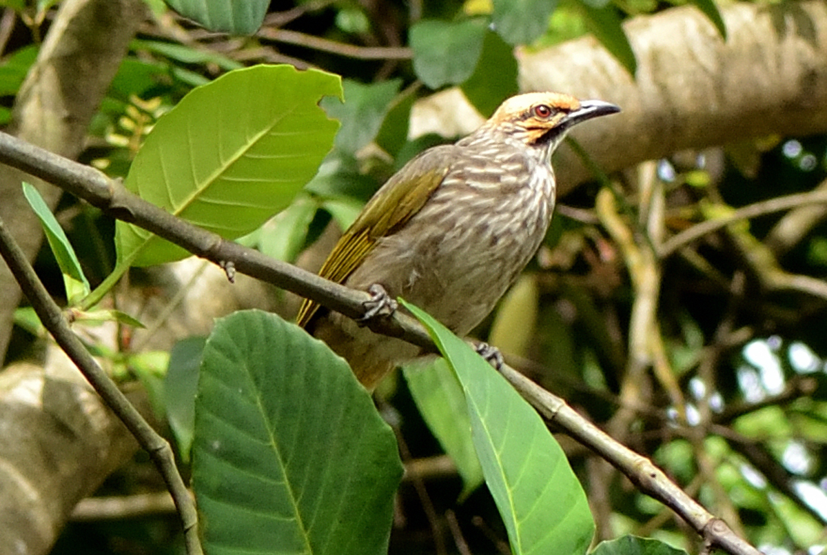 本種は亜熱帯、熱帯の湿った低地の森林、マングローブ林、耕作地などに生息する。もともと美声のBulbulのなかでも本種は特に美声であり、東南アジアの鳥マニアの間で高い人気を誇る。しかしながら、捕獲や開発による自然環境変化などにより個体数が減少しており、2018年には絶滅危惧種からその上の絶滅寸前種に指定されている。 撮影:Dec.2012 @Singapore