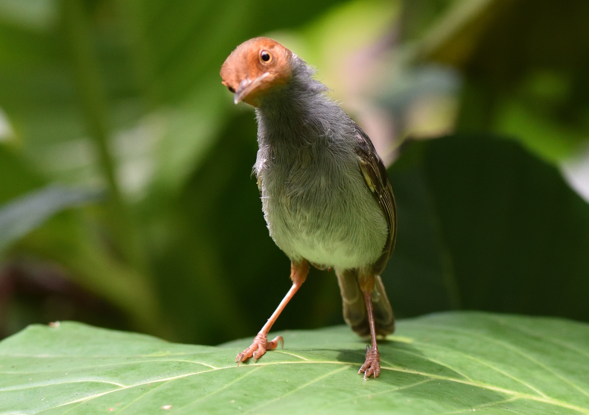 林の中から飛び出してきた幼鳥。葉の上を走り回って遊ぶ。 撮影:Sep.2015 @Singapore