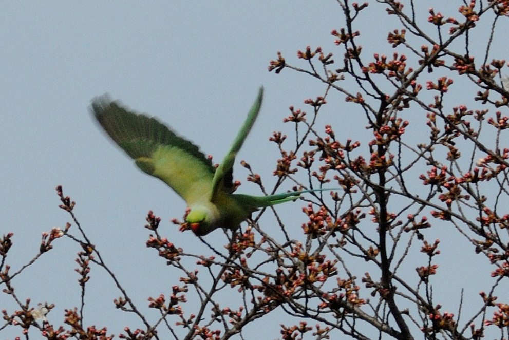 桜の木の間を素早く飛び回る。飛翔能力はかなり高い。  撮影:Mar.2016 @東京