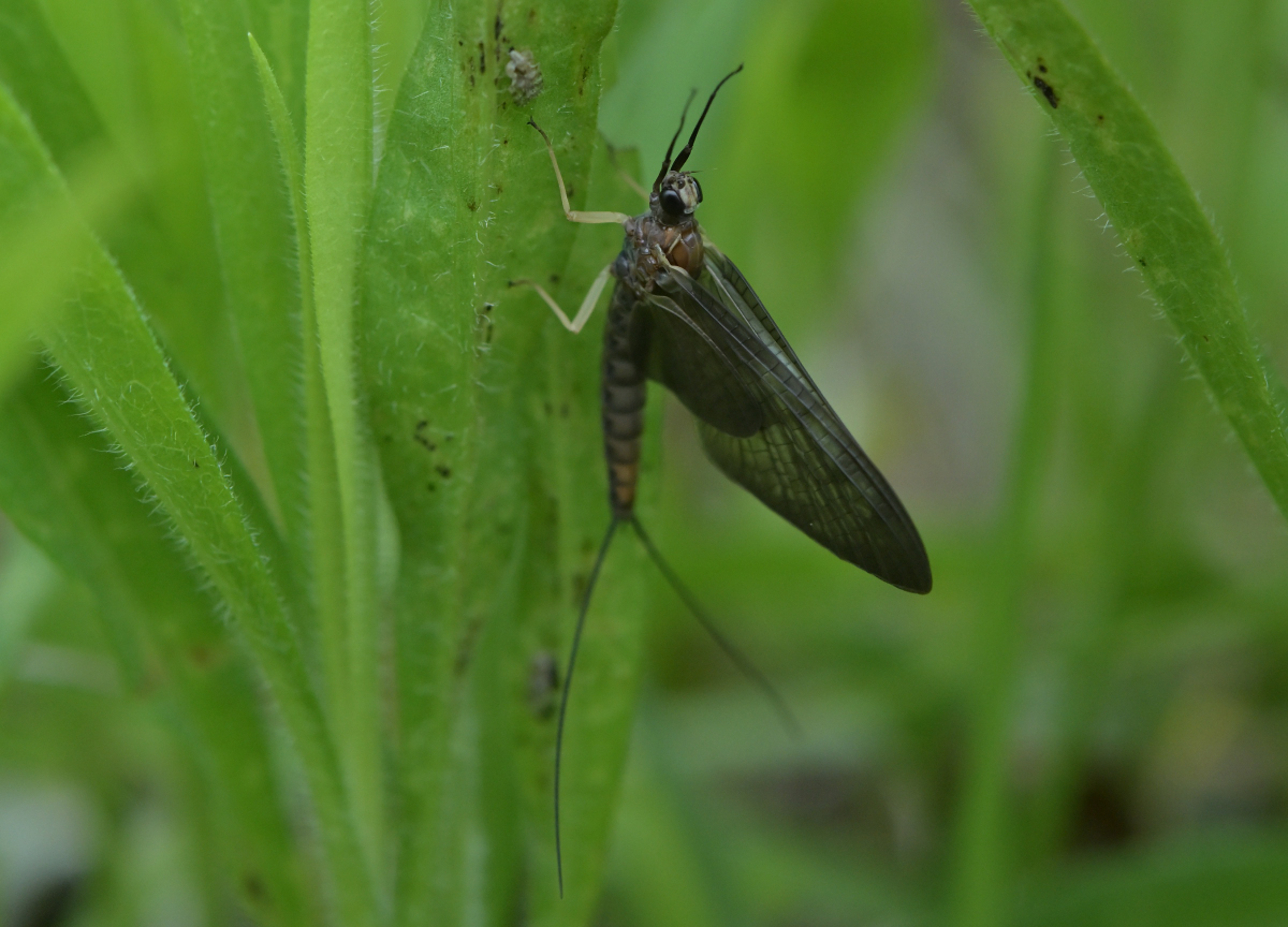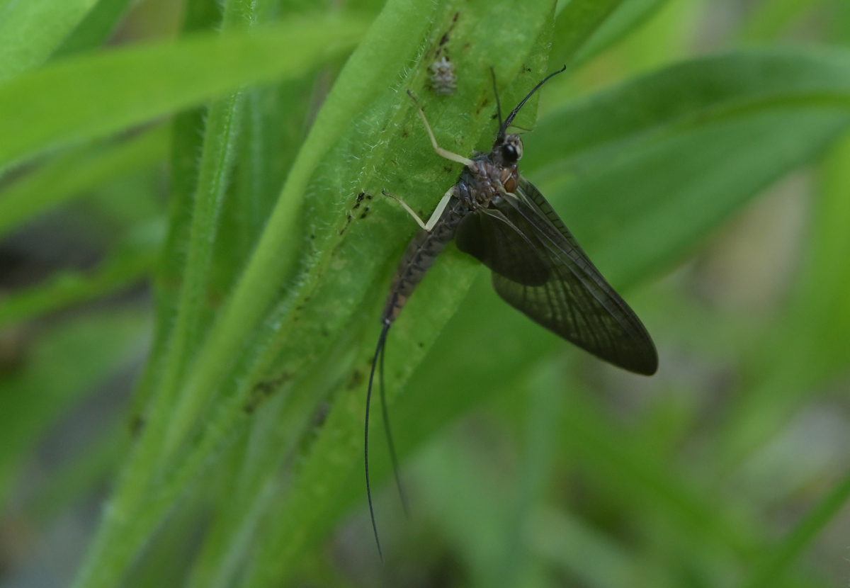 日本全国の山地から平地までの河川の岸辺など広く生息。水質汚染にも耐性がある。写真は翅が暗灰色のメスの亜成体。 撮影:May2025 @神奈川