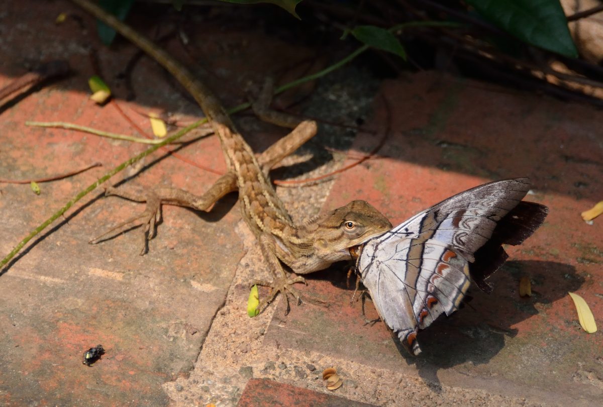 Charaxes solon echo (hunted by Calotes versicolor)